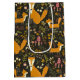 This adorable pattern has cute foxes on dark brown. There is a mummy parent fox with her baby fox. There are also mushrooms, greenery, and leaves. Makes a great addition to a birthday, Christmas, or other holiday gift for little kids!