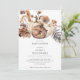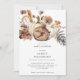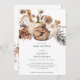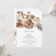 A charming fall theme baby shower invitation with sleeping fox in a pumpkin patch, with foliage. Customise for a boy or girl. Soft pastels in cream and brown.