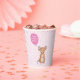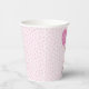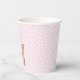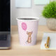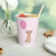 NewParkLane - Personalised Paper Cup for kids' birthday parties, with a cute woodland mouse in watercolor, with a pink balloon, for your name or other personal text, against a fun, baby pink, abstract patterned background.