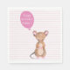 NewParkLane - Paper Napkins, with a cute woodland mouse in watercolor, with a pink balloon, against a baby pink striped background.