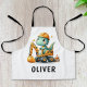 Get ready for dino-sized fun in the kitchen with this personalised apron! A charming watercolor design features a playful dinosaur operating a bright yellow excavator. Add your little chef's name for a unique and messy-play-approved look. Perfect for dino fans who love to dig in and create culinary masterpieces!