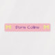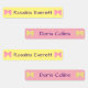 Prepare for back-to-school with these pink and yellow kids' labels, perfect for marking your children's belongings. The labels are organised into two columns: one featuring yellow labels adorned with a pink bow beside the text displaying the girl's name, and the other column showcasing pink labels with a yellow bow. The text is elegantly styled in royal purple and can be easily customised or removed according to your needs.