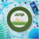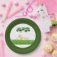 Hunter green trim baby shower paper plate for a boy or a girl. This would be a sweet theme for any baby shower. It would be adorable matched up with all the companion items to make your baby shower complete.