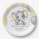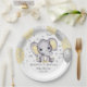 This adorable baby shower paper plate features yellow and grey baby elephant with balloons, silver stars and moons. Easily customised for your event by clicking personalise. Perfect for those special treats! Great for gender neutral baby shower.