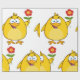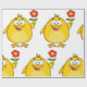 Cute Yellow Cartoon Chick with Flower Wrapping Paper