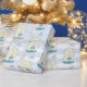 Patterned wrapping paper with a cute smiling dinosaur, pink rosy cheeks and RAWR written on his belly. 3 colourful happy stars above his head.