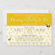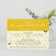 Delight your baby shower guests with these elegant bee themed couple's baby shower invitations. The front is pastel yellow with an elegant honeycomb pattern and whimsical typography. The details can be easily personalised to meet your needs. The back features cute illustrations of cartoon bees on a yellow honeycomb background. Delightful gender neutral couple's baby shower invites that are as sweet as can bee!