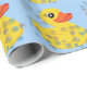 Adorable blue bubbles and bright yellow rubber duck baby shower and party gift wrapping paper.