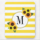 Cute Yellow Stripes Sunflowers Floral Monogram Mouse Pad