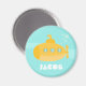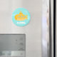 Decorate your fridge with this adorable magnet that comes with a cartoon of a yellow submarine with blue window panes and bubbles coming out from the side. Background of blue wave lines to illustrate that the underwater craft is submerged underwater. Attractive, cheerful and cute for kids who love the ocean, sea and ocean vessels. Personalise easily with child's name. Magnet is fun for attaching the kid's schedule and art pieces to the fridge.