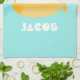 Encourage children to wash and wipe their hands on this kitchen towel. It comes with an adorable cartoon of a yellow submarine with blue window panes and bubbles coming out from the side. Background of blue wave lines to illustrate that the underwater craft is submerged underwater. This attractive and cheerful design with calm blue and touch of yellow is fun for toddlers and children. Personalise easily with child's name.