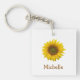 Cute keychain with a yellow sunflower bloom image. With light brown lettering, you can personalise with your own text. This rustic item makes a great gift for that someone special.