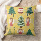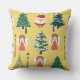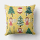 Cute yellow Xmas pattern girly l Santa and trees Cushion