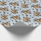 An adorable little Yorkshire Terrier puppy peeking out of a wicker basket is the feature in the pattern on this all occasion gift wrapping paper. The portrait is amid a pattern of black paw prints and white bones, and is repeated on a silver blue background. Perfect for any Yorkie Dog lover!