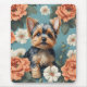 Cute Yorkshire Terrier Puppy Floral Mouse Pad