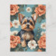 Cute Yorkshire Terrier Puppy Floral Postcard