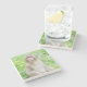 The coasters are gorgeous, a quality feel and heavy weight. They look like a precious archeological find. A rustic stone juxtaposed with a modern floral black and white print. I like the way the print goes slightly imperfect on the cut stone edges giving them a kind-of natural beauty.