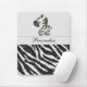 Cool custom black digital glitter zebra animal print mousepad / mousemat with a pretty white sparkle background, a white sparkle digital ribbon for you to personalise and a cute little whimsical vector cartoon zebra. A stylish, beautiful and chic, girly fashion gift for women and girls who love Zebras. PLEASE NOTE: All Zazzle products have flat printed images. Text can be made bigger or smaller and you can also change the font style and colour or remove the text altogether. If you need any assistance customising your product please contact me through my store and I will be happy to help.