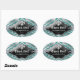 Cute Zebra Fleur de lis Glitter Teal Blue Oval Sticker