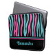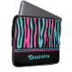 Cute Neoprene laptop sleeve 13" in retro 80's punk zebra stripes in black, turquoise, and hot pink. Add your name to it.