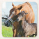 Cutest Baby Animals | Black Foal with Mum Square Paper Coaster