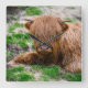 Cutest Baby Animals | Highland Cow Calf Square Wall Clock