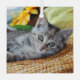 This cute Getty baby animals image features a kitten lying on a mat looking at the camera with sunflowers.