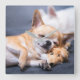 This cute Getty Images photo features a red-haired Chihuahua dog is sleeping blissfully, cuddling up to his toy.