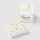 The coasters are gorgeous, a quality feel and heavy weight. They look like a precious archeological find. A rustic stone juxtaposed with a modern floral black and white print. I like the way the print goes slightly imperfect on the cut stone edges giving them a kind-of natural beauty.