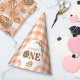 Make your baby's 1st birthday party unforgettable with this adorable "Cutie Pie" pumpkin themed party hat. Features a peach orange gingham plaid colour palette. It’s time for a sweet first birthday celebration! Perfect for an autumn, pumpkin, or Thanksgiving theme birthday. You can personalise this design by clicking on "Personalise this template" or if you wish to change the font, colours or arrange the design elements in a different way you can click on "Edit using Design Tool".