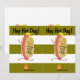 A daredevil hot dog with wind-blown mustard hair jumping fire. Printed 2 up for you to cut yourself and save on printing costs.