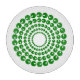 Green beads threaded on a thin line, form a circle. The circle is replicated 4 more times in increasingly smaller circles going to the centre to creates an optical illusion of a tunnel effect.