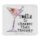 VODKA IS CHEAPER THAN THERAPY COCKTAIL HUMOR A humourous cocktail quote from The Martini Diva featuring a colourful Martini Glass filled with a Rainbow of Bubbles with a Cocktail Pick Accent.