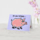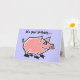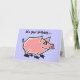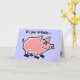 Hilarious cartoon pink pig birthday card design. It says: It's your birthday outside and inside it says: Where's the cake! (along with another little piggy). He's cute and funny and full of personality. Can also add custom text when ordering
