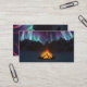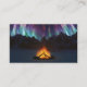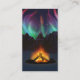In a snow-covered valley on a frosty night in the dead of winter a bonfire leaps up to mirror the northern lights filling the sky above the distant mountains.