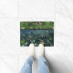 A split underwater scene with a green valley above and the cold depths of a rocky mountain river below. Sun rays dance through the water and shoals of silver fish swim among the stones and weeds of the river bed.