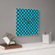 Cyan and charcoal checkerboard pattern square wall clock