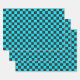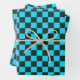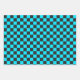 Cyan and charcoal chequerboard pattern wrapping paper sheet