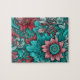 Cyan flowers Surreal Blossoms in red and blue Jigsaw Puzzle