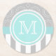 Cyan, Grey And White Motif Sriped Monogram Coaster