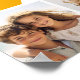 Front - 8 Photo template in a simple grid with a white border. A fun, retro stripe pattern with red, gold and blue on a black background. and a simple font make a modern, minimal design to send to friends. If you want to make changes, go into the advanced design area and have fun -- change the colours of the stripes and fonts.
