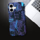 Cyber Blue PCB Circuit Board Trace Pattern Art