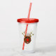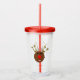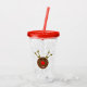 This awesome tumbler features a funny cartoon of a Reindeer. He has beady black eyes and a huge bright red glowing nose. The antlers are pointing up and look futuristic making this reindeer a cyber reindeer. He is still cute and friendly though.