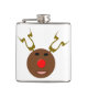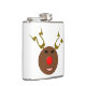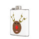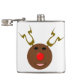 This awesome flask features a funny cartoon of a Reindeer. He has beady black eyes and a huge bright red glowing nose. The antlers are pointing up and look futuristic making this reindeer a cyber reindeer. He is still cute and friendly though.