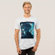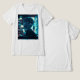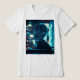 This minimalist and thought-provoking t-shirt design features a human head overlaid with a digital brain, symbolising the convergence of human intelligence and artificial intelligence. The design evokes a sense of futuristic technology and the potential of AI to shape our future. The dark background and blue neon accents create a striking and mysterious aesthetic.