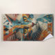 CYBERNETIC KITTY CAT ABSTRACT GEOMETRIC CUBISM BEACH TOWEL