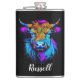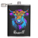 Cyberpunk Colourful Ai Highland Cow Personalised Hip Flask