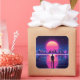 Melancholic cyberpunk man staring at the setting retrowave sun.