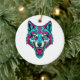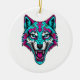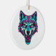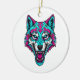 Cyberpunk Neon Wolf - Synthwave Robotic Animal Ceramic Ornament