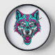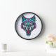 Cyberpunk Neon Wolf - Synthwave Robotic Animal Clock